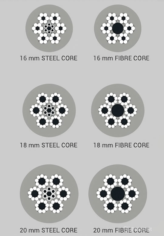 Каждая прядь плотно оплетена вокруг оцинкованной стальной проволоки.