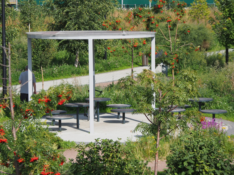 Парк «Покровское-Стрешнево»: в данном проекты мы реализовали множество нестандартных сооружений на территории парка для кафе, пунктов проката и охраны, которые были выполнены в единой стилистике парка.