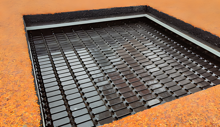 Полотно состоит из множества отдельных сегментов из полиуретана, зафиксированных на тросах из нержавеющей стали. Такое полотно обладает высокой прочностью, стойкостью к износу и деформации. Пластиковое полотно практически не подвергается воздействию воды и УФ-излучения, а также может быть использовано в очень широких температурных условиях. Батуты из пластиковых сегментов устойчивы к вандализму, благодаря чему они отлично подходят для использования в общественных парках, дворах многоквартирных домов, территорий с высокой проходимостью. Пластиковые сегменты бывают множества различных цветов, которые можно смешивать и создавать уникальные рисунки или стилизовать его в дизайн-код объекта.