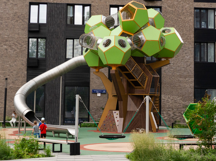 Типовые игровые комплексы постепенно уступают место авторским проектам, отвечающим конкретным задачам территории и запросам пользователей. Преимущества нестандартных площадок: